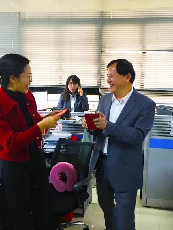 2024年2月19日,廣西翰林工程項(xiàng)目管理有限責(zé)任公司高層在董事長鄧德輝帶領(lǐng)下,給全體員工送上開年紅包和新年祝福,寓意著新的一年里,公司領(lǐng)導(dǎo)繼續(xù)與員工努力共創(chuàng)美好未來。